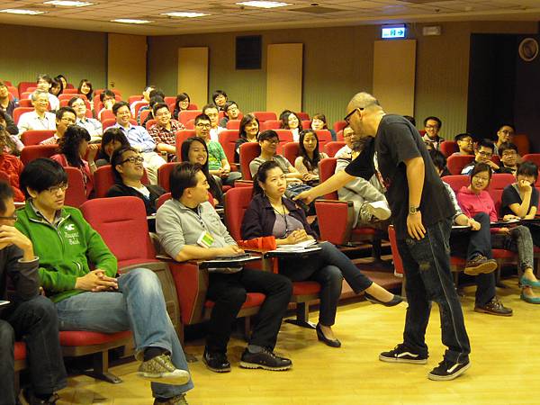 小編今天跟著外遇遇見羊男主角劉亮佐~~一同前往緯創資通,進行「世界劇場十週年」的戲劇導讀講座